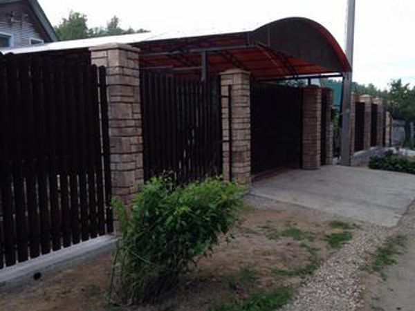 После согласования деталей и оплаты осуществляется установка забора, ворот, навеса и т.д.