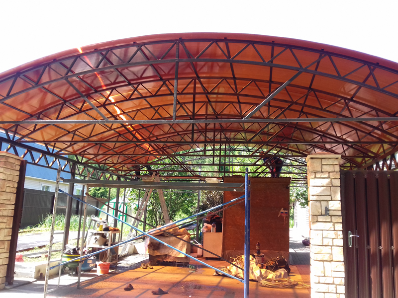 Наиболее востребованы так называемые автонавесы, или навесы для автомобилей. На территории города Москвы всё чаще встречаются лёгкие и компактные гаражи из этого материала, а дачники чаще всего ограничиваются простым навесом без боковых стенок – это намного экономичнее и в финансовом плане, и по части грамотного использования пространства.