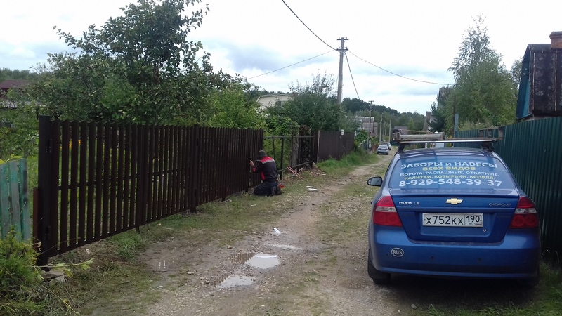 После согласования деталей и оплаты осуществляется установка забора, ворот, навеса и т.д.