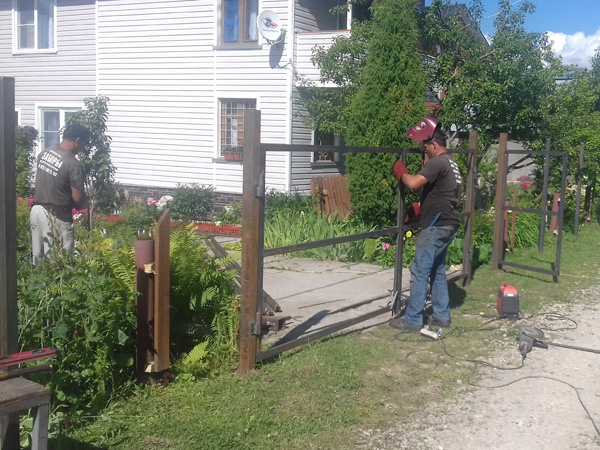 После согласования деталей и оплаты осуществляется установка забора, ворот, навеса и т.д.