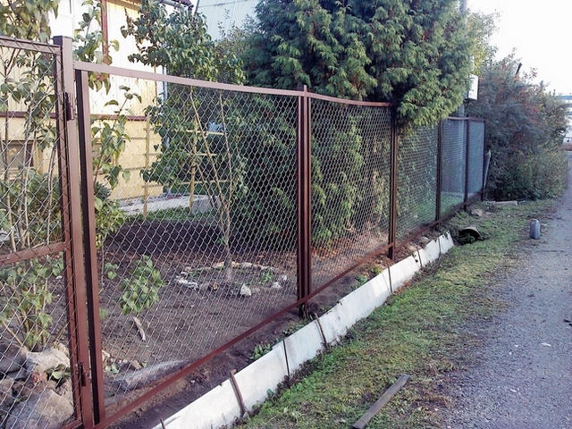 -Последний вариант сетки наиболее красивый и долговечный, поэтому ее используют для обустройства сетчатых заборов с каменными или металлическими столбами и ленточным фундаментом. Понятно, что таким образом выполняют заборы вдоль фасада дома или части участка, примыкающей к улице. Для боковых и тыльных зон ограждения используют секционный забор из сварной сетки или даже просто полотно, натянутое на столбах. Работать с ограждением из сварной сетки намного проще и удобнее, чем с-рабицей.