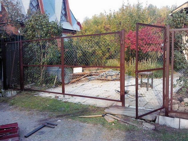 Для того чтобы понять положительные и отрицательные стороны гиттера, попытаемся сравнить его с-рабицей в качестве материала для забора дачи или загородного дома. Забор из сетки гиттера очень сложно построить своими руками, потребуется специальное оборудование для профилирования и разделки, сварочный аппарат и металлопрокат или трубы для изготовления каркасов секций.-рабицу можно купить в свернутом рулоне и натянуть собственными силами, без больших затрат.
