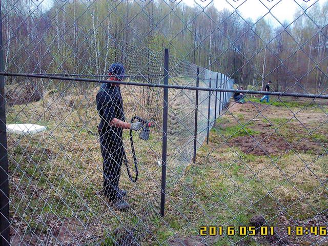 Опытные дачники, хорошо знакомые с особенностями устройства-рабицы, предпочитают использовать плетенку из черного металла. Для ограждения участка в шесть соток потребуется чуть более 110 м забора. Экономия в сравнении с оцинкованной-рабицей составит 40 долл. или цена банки хорошей эпоксидной краски, которая обеспечит суперзащиту забора лет на десять.