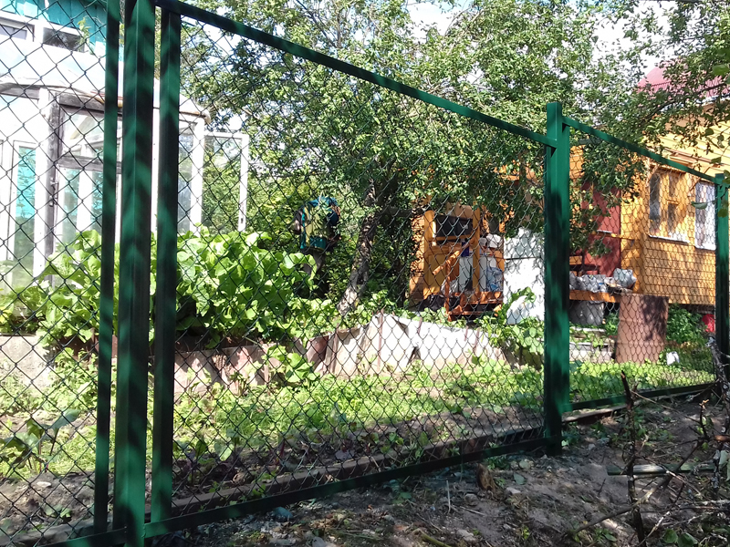 Если при каких то обстоятельствах забор из сетки рабица был поврежден - его очень просто починить - не стоит заменят ограждение полностью, а лишь поврежденный участок.