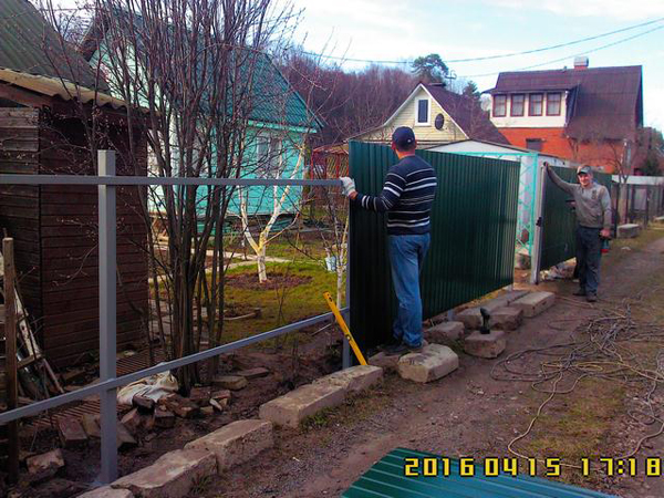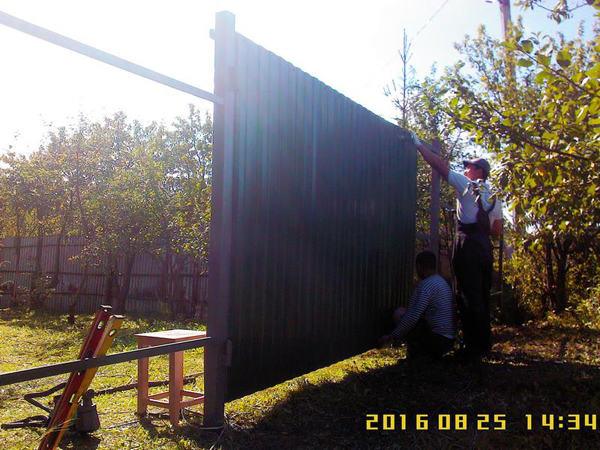 После согласования деталей и оплаты осуществляется установка забора, ворот, навеса и т.д.