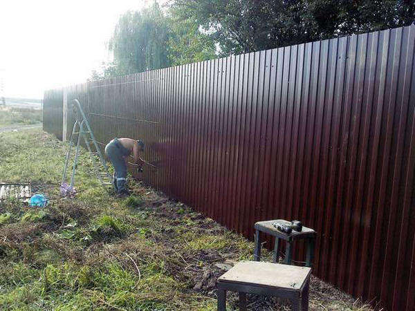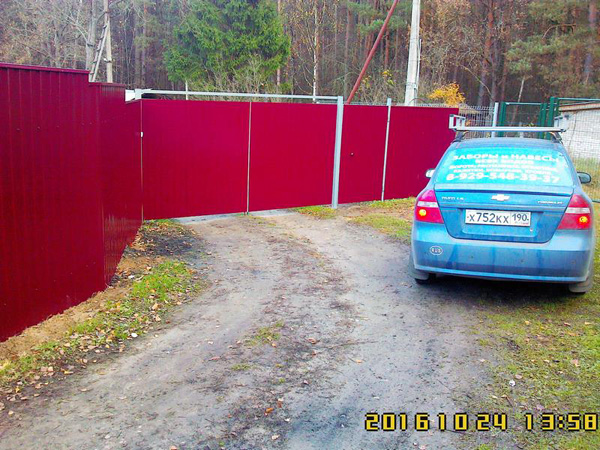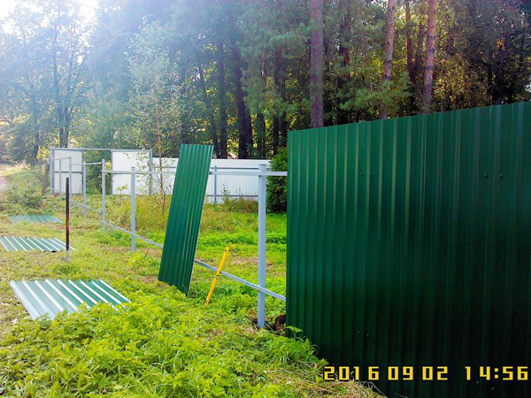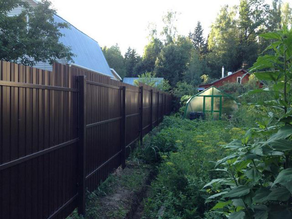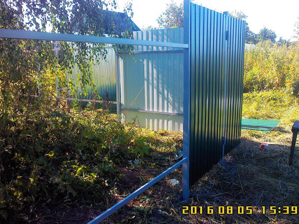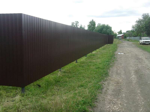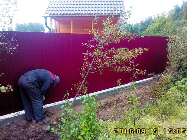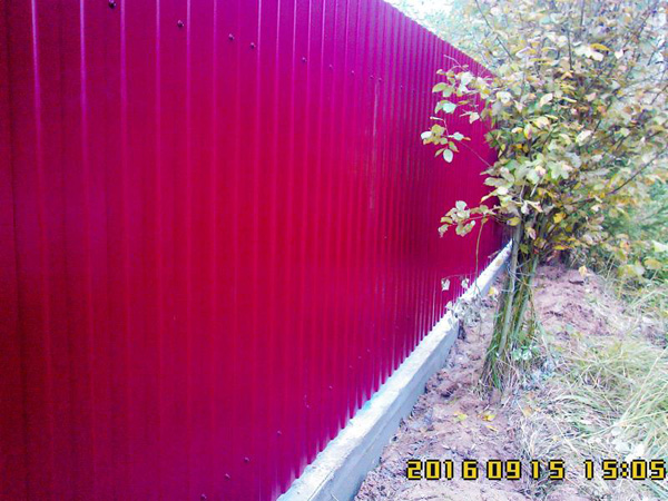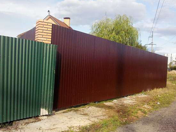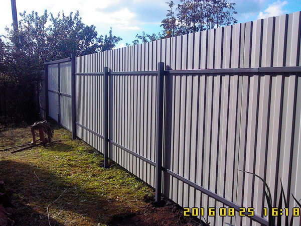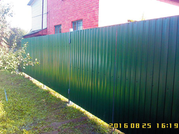 Он полностью оградит вашу территорию от посторонних и любопытных глаз прохожих. Профнастил является очень прочным материалом и его трудно повредить. Еще один большой полюс заключается в его невысокой стоимости.